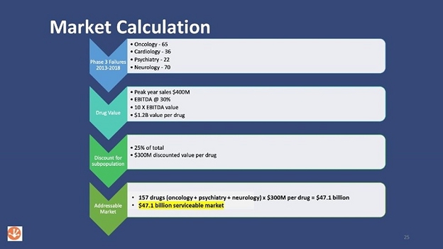 | ● | divest and sell the rescued drug asset with the new information back to a large player in the pharma industry, following positive results of the clinical trial. |